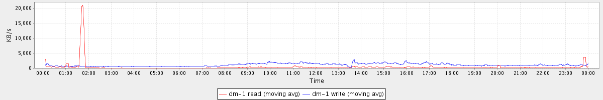 avg(dm-1 read) = 414.42 avg(dm-1 write) = 1088.89