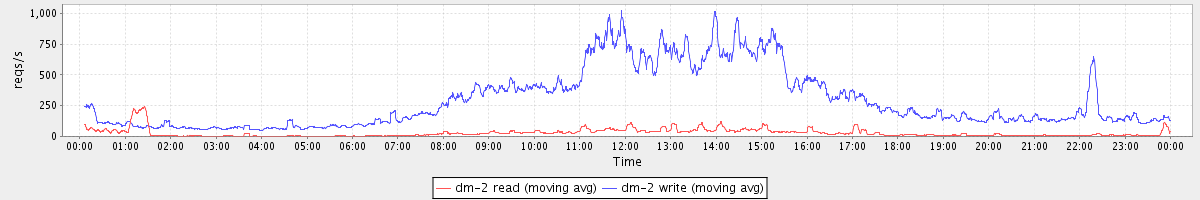 avg(dm-2 read) = 533.45 avg(dm-2 write) = 1562.07