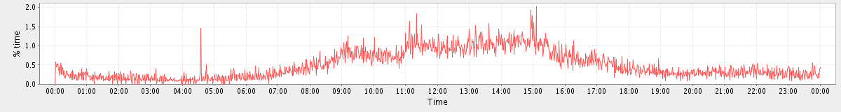 avg(processes waiting for run time) = 1.56 avg(processes waiting for io time) = 0.84 avg(load average (1 min)) = 2.51