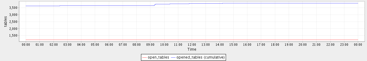 avg(open_tables) = 1199.95 avg(opened_tables (cumulative)) = 3751.10