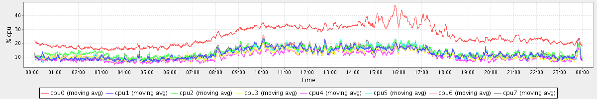 avg(cpu0) = 1.56 avg(cpu1) = 0.29 avg(cpu2) = 0.36 avg(cpu3) = 0.23 avg(cpu4) = 0.18 avg(cpu5) = 0.22 avg(cpu6) = 0.27 avg(cpu7) = 0.20