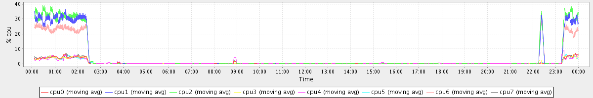 avg(cpu0) = 1.12 avg(cpu1) = 1.12 avg(cpu2) = 1.07 avg(cpu3) = 0.74 avg(cpu4) = 0.49 avg(cpu5) = 0.47 avg(cpu6) = 0.60 avg(cpu7) = 0.38
