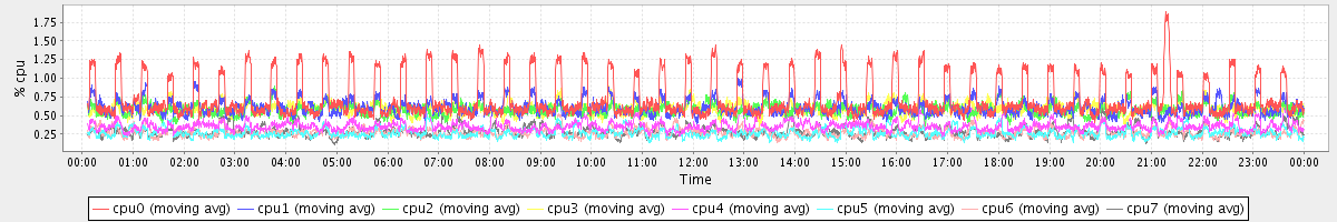 avg(cpu0) = 0.01 avg(cpu1) = 0.00 avg(cpu2) = 0.08 avg(cpu3) = 0.03 avg(cpu4) = 0.12 avg(cpu5) = 0.01 avg(cpu6) = 0.01 avg(cpu7) = 0.01