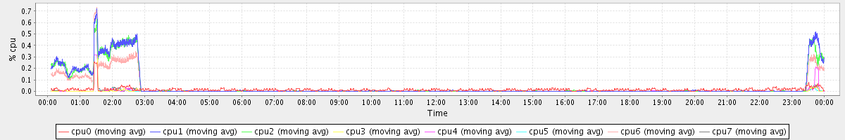 avg(cpu0) = 0.01 avg(cpu1) = 0.05 avg(cpu2) = 0.04 avg(cpu3) = 0.00 avg(cpu4) = 0.00 avg(cpu5) = 0.00 avg(cpu6) = 0.03 avg(cpu7) = 0.00