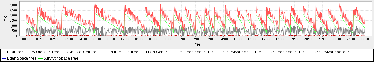 avg(total free) = 1722.66 avg(PS Old Gen free) = 0.00 avg(CMS Old Gen free) = 1207.60 avg(Tenured Gen free) = 0.00 avg(Train Gen free) = 0.00 avg(PS Eden Space free) = 0.00 avg(PS Survivor Space free) = 0.00 avg(Par Eden Space free) = 480.13 avg(Par Survivor Space free) = 34.93 avg(Eden Space free) = 0.00 avg(Survivor Space free) = 0.00