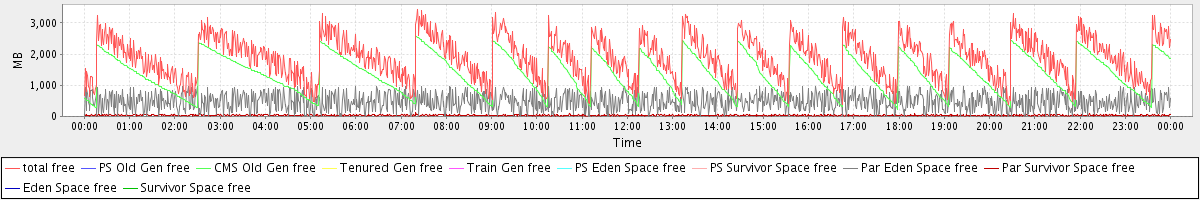 avg(total free) = 1880.12 avg(PS Old Gen free) = 0.00 avg(CMS Old Gen free) = 1363.75 avg(Tenured Gen free) = 0.00 avg(Train Gen free) = 0.00 avg(PS Eden Space free) = 0.00 avg(PS Survivor Space free) = 0.00 avg(Par Eden Space free) = 479.64 avg(Par Survivor Space free) = 36.73 avg(Eden Space free) = 0.00 avg(Survivor Space free) = 0.00