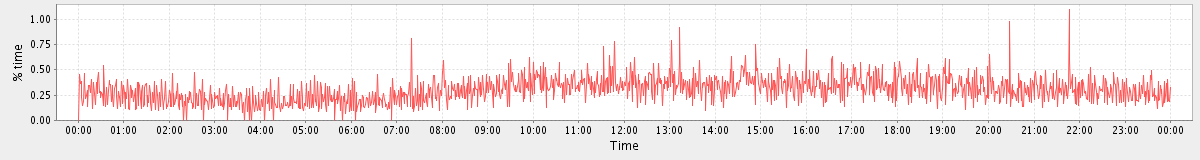 avg(user) = 10.18 avg(sys) = 0.97 avg(idle) = 86.09 avg(iowait) = 2.51 avg(nice) = 0.00 avg(irq) = 0.01 avg(softirq) = 0.23