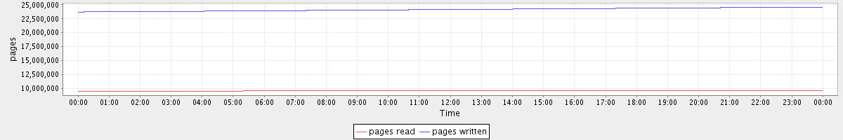 avg(pages read) = 9603926.84 avg(pages written) = 24169048.74