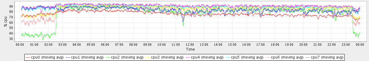 avg(cpu0) = 76.21 avg(cpu1) = 83.66 avg(cpu2) = 76.87 avg(cpu3) = 85.88 avg(cpu4) = 91.23 avg(cpu5) = 88.54 avg(cpu6) = 81.56 avg(cpu7) = 89.30