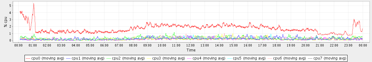 avg(cpu0) = 0.24 avg(cpu1) = 0.03 avg(cpu2) = 0.05 avg(cpu3) = 0.01 avg(cpu4) = 0.00 avg(cpu5) = 0.00 avg(cpu6) = 0.04 avg(cpu7) = 0.00