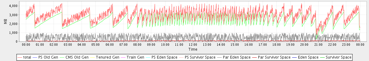 avg(total) = 2983.57 avg(PS Old Gen) = 0.00 avg(CMS Old Gen) = 2414.71 avg(Tenured Gen) = 0.00 avg(Train Gen) = 0.00 avg(PS Eden Space) = 0.00 avg(PS Survivor Space) = 0.00 avg(Par Eden Space) = 484.50 avg(Par Survivor Space) = 84.35 avg(Eden Space) = 0.00 avg(Survivor Space) = 0.00