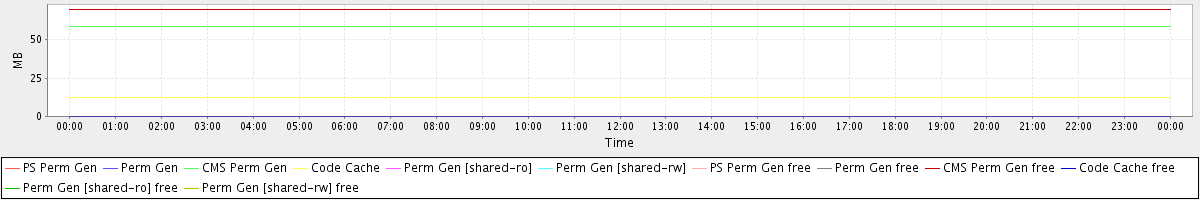 avg(PS Perm Gen) = 0.00 avg(Perm Gen) = 0.00 avg(CMS Perm Gen) = 58.38 avg(Code Cache) = 12.53 avg(Perm Gen [shared-ro]) = 0.00 avg(Perm Gen [shared-rw]) = 0.00 avg(PS Perm Gen free) = 0.00 avg(Perm Gen free) = 0.00 avg(CMS Perm Gen free) = 69.62 avg(Code Cache free) = 0.23 avg(Perm Gen [shared-ro] free) = 0.00 avg(Perm Gen [shared-rw] free) = 0.00
