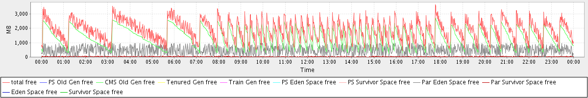 avg(total free) = 1884.67 avg(PS Old Gen free) = 0.00 avg(CMS Old Gen free) = 1369.00 avg(Tenured Gen free) = 0.00 avg(Train Gen free) = 0.00 avg(PS Eden Space free) = 0.00 avg(PS Survivor Space free) = 0.00 avg(Par Eden Space free) = 486.46 avg(Par Survivor Space free) = 29.21 avg(Eden Space free) = 0.00 avg(Survivor Space free) = 0.00