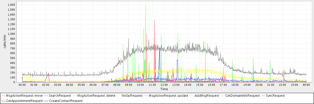max(MsgActionRequest.move) = 1282.00 max(SearchRequest) = 465.00 max(MsgActionRequest.delete) = 1599.00 max(NoOpRequest) = 317.00 max(MsgActionRequest.update) = 327.00 max(AddMsgRequest) = 429.00 max(GetDomainInfoRequest) = 293.00 max(SyncRequest) = 906.00 max(GetAppointmentRequest) = 775.00 max(CreateContactRequest) = 706.00