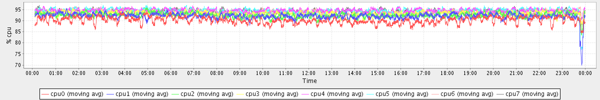 avg(cpu0) = 90.16 avg(cpu1) = 92.04 avg(cpu2) = 92.45 avg(cpu3) = 93.04 avg(cpu4) = 94.48 avg(cpu5) = 94.45 avg(cpu6) = 93.98 avg(cpu7) = 94.13