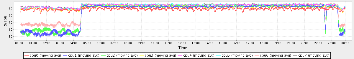 avg(cpu0) = 88.95 avg(cpu1) = 84.46 avg(cpu2) = 85.10 avg(cpu3) = 91.61 avg(cpu4) = 93.66 avg(cpu5) = 93.89 avg(cpu6) = 88.78 avg(cpu7) = 93.94