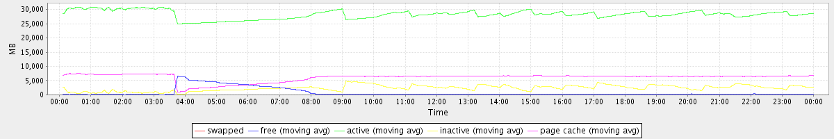 avg(swapped) = 0.00 avg(free) = 801.13 avg(active) = 28281.53 avg(inactive) = 2364.64 avg(page cache) = 6080.07