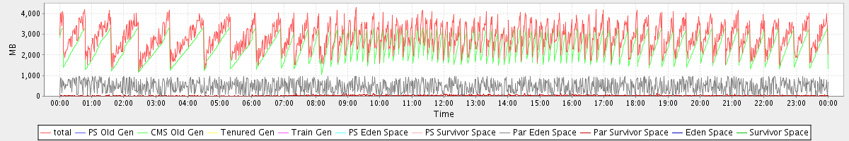 avg(total) = 2873.09 avg(PS Old Gen) = 0.00 avg(CMS Old Gen) = 2360.83 avg(Tenured Gen) = 0.00 avg(Train Gen) = 0.00 avg(PS Eden Space) = 0.00 avg(PS Survivor Space) = 0.00 avg(Par Eden Space) = 482.94 avg(Par Survivor Space) = 29.31 avg(Eden Space) = 0.00 avg(Survivor Space) = 0.00