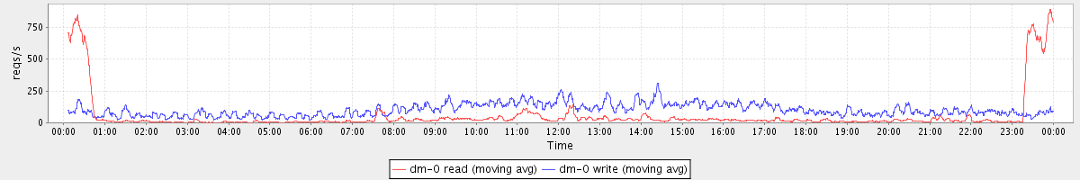 avg(dm-0 read) = 946.36 avg(dm-0 write) = 402.64
