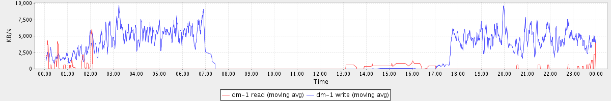 avg(dm-1 read) = 4.81 avg(dm-1 write) = 622.64