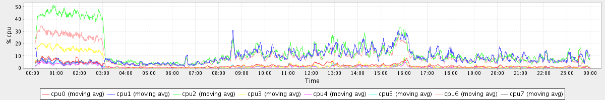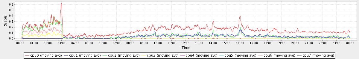 avg(cpu0) = 1.41 avg(cpu1) = 0.24 avg(cpu2) = 0.29 avg(cpu3) = 0.18 avg(cpu4) = 0.12 avg(cpu5) = 0.15 avg(cpu6) = 0.20 avg(cpu7) = 0.15