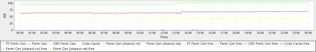 avg(PS Perm Gen) = 0.00 avg(Perm Gen) = 0.00 avg(CMS Perm Gen) = 98.82 avg(Code Cache) = 42.29 avg(Perm Gen [shared-ro]) = 0.00 avg(Perm Gen [shared-rw]) = 0.00 avg(PS Perm Gen free) = 0.00 avg(Perm Gen free) = 0.00 avg(CMS Perm Gen free) = 65.88 avg(Code Cache free) = 0.33 avg(Perm Gen [shared-ro] free) = 0.00 avg(Perm Gen [shared-rw] free) = 0.00