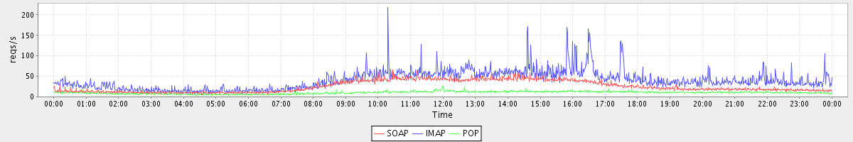 Host zm06.stanford.edu: Mailboxd: Request Rate by Client Protocol
