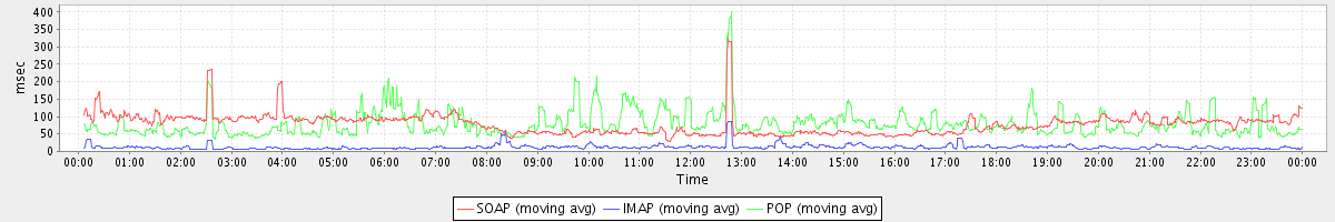 Host zm02.stanford.edu: Mailboxd: Response Time by Client Protocol