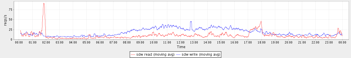 avg(sda1 read) = 24.63 avg(sda1 write) = 279.87