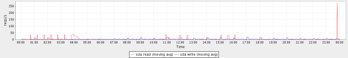 avg(sda read) = 18.20 avg(sda write) = 289.47