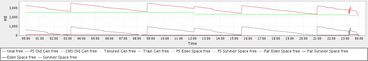 avg(total free) = 2945.30 avg(PS Old Gen free) = 0.00 avg(CMS Old Gen free) = 2407.37 avg(Tenured Gen free) = 0.00 avg(Train Gen free) = 0.00 avg(PS Eden Space free) = 0.00 avg(PS Survivor Space free) = 0.00 avg(Par Eden Space free) = 488.28 avg(Par Survivor Space free) = 49.65 avg(Eden Space free) = 0.00 avg(Survivor Space free) = 0.00