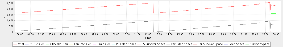 avg(total) = 2087.85 avg(PS Old Gen) = 0.00 avg(CMS Old Gen) = 1549.18 avg(Tenured Gen) = 0.00 avg(Train Gen) = 0.00 avg(PS Eden Space) = 0.00 avg(PS Survivor Space) = 0.00 avg(Par Eden Space) = 493.05 avg(Par Survivor Space) = 45.61 avg(Eden Space) = 0.00 avg(Survivor Space) = 0.00