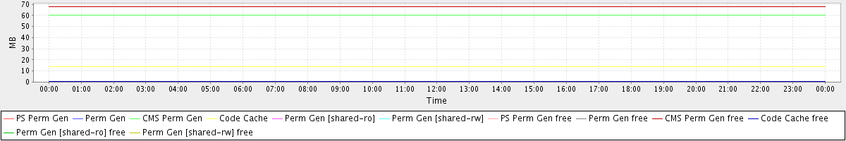avg(PS Perm Gen) = 0.00 avg(Perm Gen) = 0.00 avg(CMS Perm Gen) = 60.06 avg(Code Cache) = 13.88 avg(Perm Gen [shared-ro]) = 0.00 avg(Perm Gen [shared-rw]) = 0.00 avg(PS Perm Gen free) = 0.00 avg(Perm Gen free) = 0.00 avg(CMS Perm Gen free) = 67.94 avg(Code Cache free) = 0.31 avg(Perm Gen [shared-ro] free) = 0.00 avg(Perm Gen [shared-rw] free) = 0.00