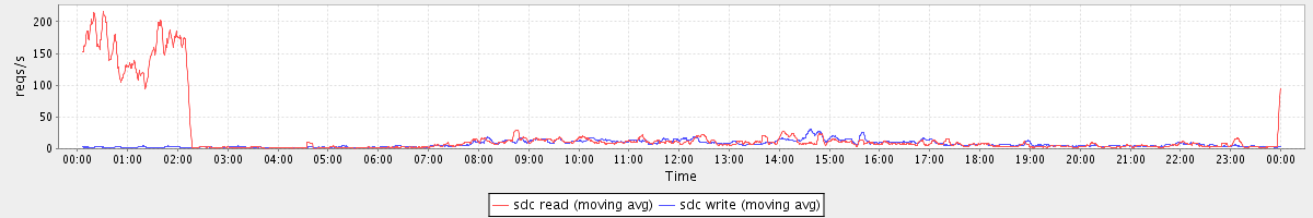 avg(sda read) = 23.07 avg(sda write) = 367.74