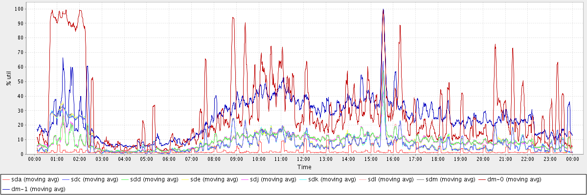 avg(sda) = 1.96 avg(sdc) = 8.01 avg(sdd) = 8.94 avg(sde) = 8.10 avg(sdj) = 8.89 avg(sdk) = 7.99 avg(sdl) = 9.03 avg(sdm) = 7.94 avg(dm-0) = 28.92 avg(dm-1) = 25.62