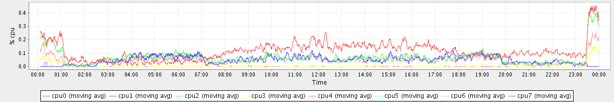 avg(cpu0) = 1.15 avg(cpu1) = 0.36 avg(cpu2) = 0.36 avg(cpu3) = 0.26 avg(cpu4) = 0.22 avg(cpu5) = 0.24 avg(cpu6) = 0.31 avg(cpu7) = 0.23