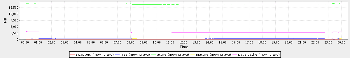 avg(swapped) = 0.25 avg(free) = 451.84 avg(active) = 13869.17 avg(inactive) = 563.54 avg(page cache) = 2788.39