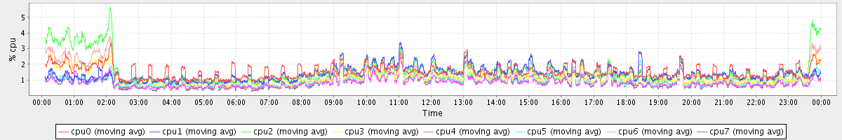 avg(cpu0) = 0.12 avg(cpu1) = 0.03 avg(cpu2) = 0.05 avg(cpu3) = 0.01 avg(cpu4) = 0.00 avg(cpu5) = 0.00 avg(cpu6) = 0.04 avg(cpu7) = 0.00
