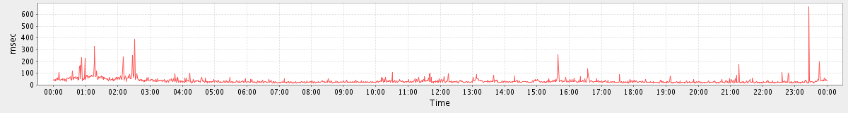 avg(BrowseRequest) = 658.00 avg(CheckRecurConflictsRequest) = 1275.83 avg(SendInviteReplyRequest) = 562.05 avg(RemoveAttachmentsRequest) = 1066.32 avg(AutoCompleteRequest) = 607.32 avg(ApplyFilterRulesRequest) = 25422.00 avg(ConvActionRequest.delete) = 884.53 avg(FolderActionRequest.empty) = 3314.51 avg(BackupRequest) = 4731.00 avg(GetQuotaUsageRequest) = 1293.00