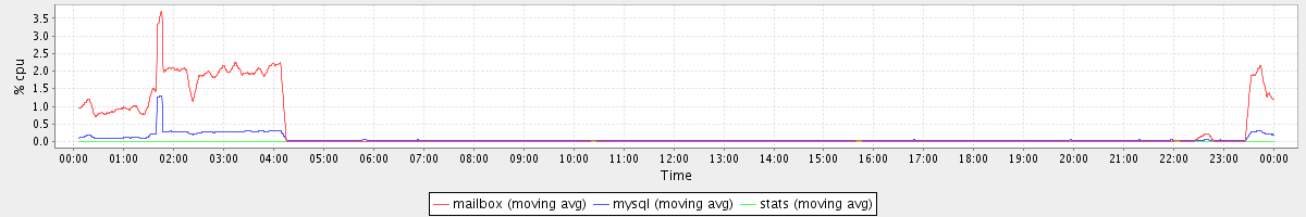 avg(mailbox) = 0.32 avg(mysql) = 0.07 avg(stats) = 0.00