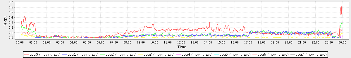 avg(cpu0) = 0.11 avg(cpu1) = 0.05 avg(cpu2) = 0.06 avg(cpu3) = 0.00 avg(cpu4) = 0.00 avg(cpu5) = 0.00 avg(cpu6) = 0.04 avg(cpu7) = 0.00