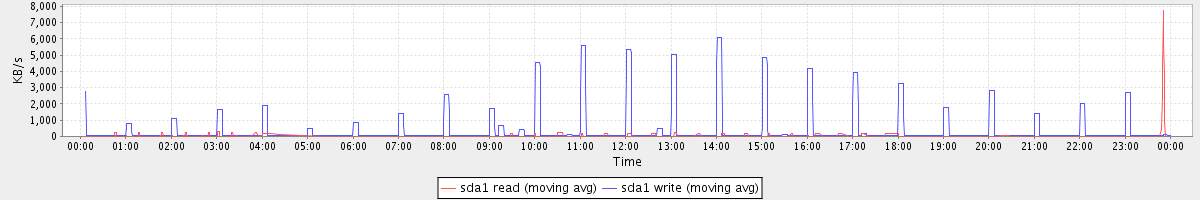 avg(sda1 read) = 21.35 avg(sda1 write) = 381.43