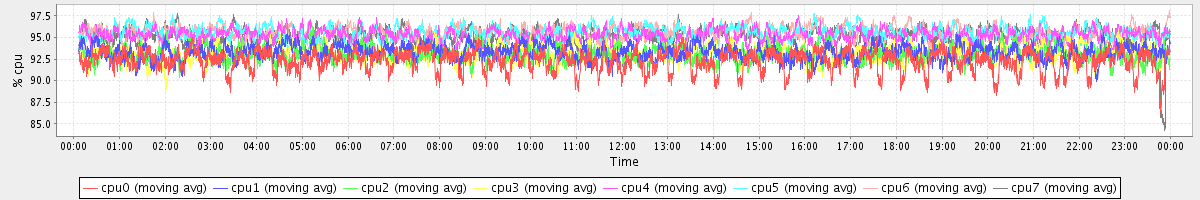 avg(cpu0) = 92.28 avg(cpu1) = 93.30 avg(cpu2) = 93.04 avg(cpu3) = 93.11 avg(cpu4) = 95.24 avg(cpu5) = 95.54 avg(cpu6) = 95.50 avg(cpu7) = 95.17