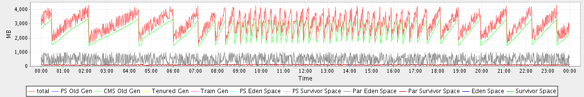avg(total) = 2998.11 avg(PS Old Gen) = 0.00 avg(CMS Old Gen) = 2424.95 avg(Tenured Gen) = 0.00 avg(Train Gen) = 0.00 avg(PS Eden Space) = 0.00 avg(PS Survivor Space) = 0.00 avg(Par Eden Space) = 484.05 avg(Par Survivor Space) = 89.11 avg(Eden Space) = 0.00 avg(Survivor Space) = 0.00