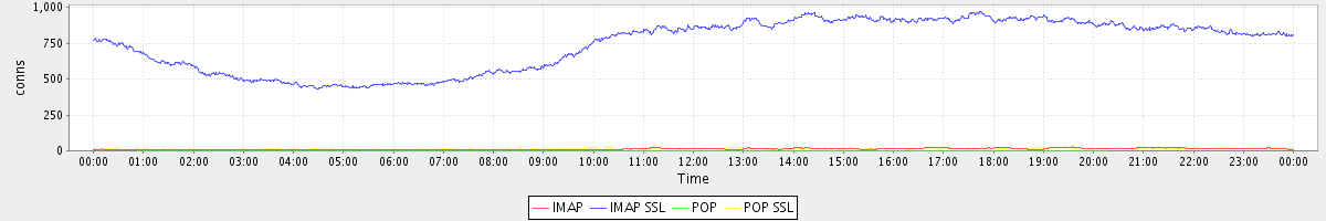 avg(IMAP) = 12.31 avg(IMAP SSL) = 741.95 avg(POP) = 0.03 avg(POP SSL) = 13.30