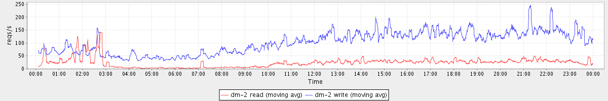 avg(dm-0 read) = 3356.77 avg(dm-0 write) = 460.02