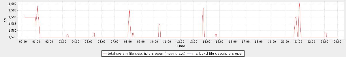 avg(total system file descriptors open) = 1576.32 avg(mailboxd file descriptors open) = 0.00
