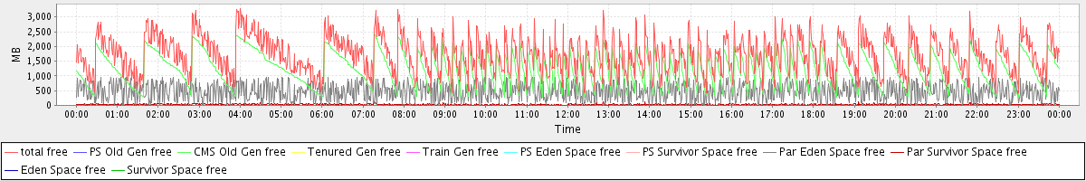 avg(total free) = 1733.71 avg(PS Old Gen free) = 0.00 avg(CMS Old Gen free) = 1230.08 avg(Tenured Gen free) = 0.00 avg(Train Gen free) = 0.00 avg(PS Eden Space free) = 0.00 avg(PS Survivor Space free) = 0.00 avg(Par Eden Space free) = 475.83 avg(Par Survivor Space free) = 27.79 avg(Eden Space free) = 0.00 avg(Survivor Space free) = 0.00