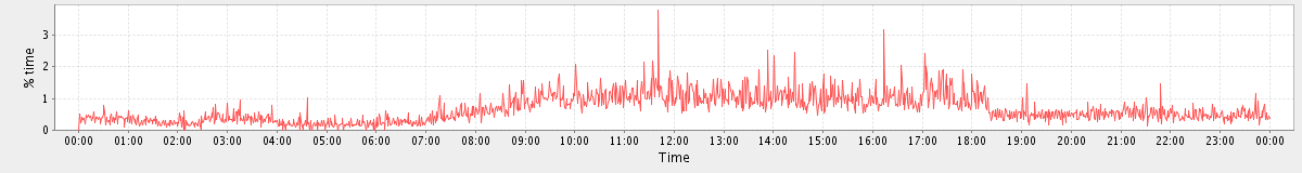 avg(user) = 13.17 avg(sys) = 1.26 avg(idle) = 79.67 avg(iowait) = 5.48 avg(nice) = 0.00 avg(irq) = 0.02 avg(softirq) = 0.38