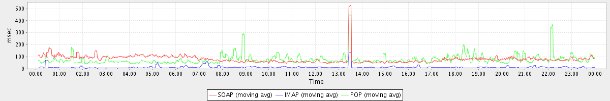 avg(SOAP) = 81.19 avg(IMAP) = 13.53 avg(POP) = 78.49